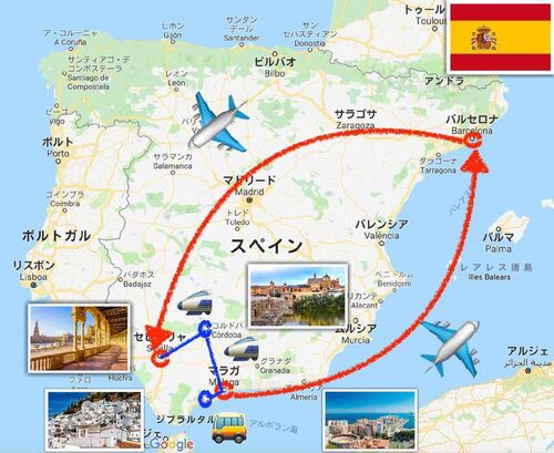 2泊3日でバルセロナから南スペインの4都市 (セビリア・コルドバ・マラガ・ミハス) 巡りをすると、トータル何円かかるのか。効率の良い回り方、交通手段、宿泊費、をシェア。 一番時間に無駄がないルートは、セビリア➡︎コルドバ➡︎マラガ➡︎ミハス 行きはセビリ…