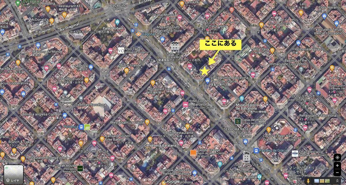 バルセロナの街のど真ん中にあるので、観光でバルセロナを訪問中の人もアクセスしやすい。カサミラから徒歩わずか2分 (220m)!カサバトリョからも歩いて4分 (400m) の距離。